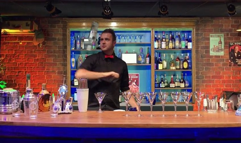 Ένας μπάρμαν περιστρέφει εντυπωσιακά ένα μπουκάλι 25 φορές πάνω στο βραχίονα του, πριν το στείλει μέσα σε ένα σέικερ.