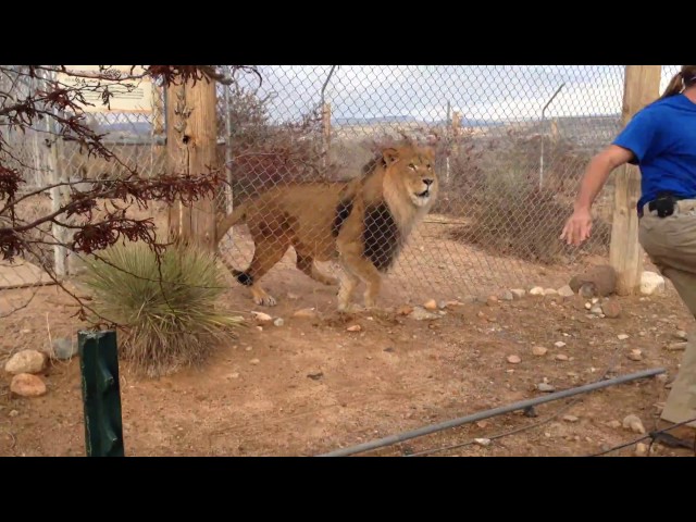 Ένας ζωολόγος σε ζωολογικό πάρκο της Αριζόνα στις ΗΠΑ, εξηγεί στους επισκέπτες ότι δεν πρέπει ποτέ να δείξεις σε ένα λιοντάρι ότι φοβάσαι. Και ενώ τους εξηγεί αυτό, θα ανοίξει κατά λάθος την πόρτα του περιβλήματος του λιονταριού, το οποίο θα πηδήξει προς τα πάνω του και θα τον τρομάξει. Πολλοί λένε ότι αυτή είναι μια στημένη σκηνή για να διασκεδάσει τους επισκέπτες.