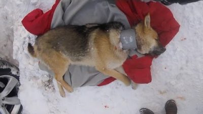 Thankfully, after wading through a metre and a half of snow for six hours, the wild veterinary specialist was on hand to provide the damaged dog with a lifeline.