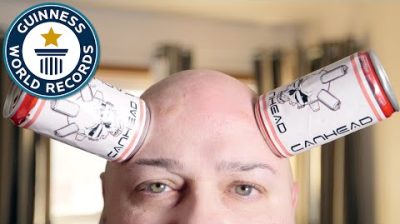 Jamie “Can Head” Keeton (USA) was born with an extraordinary talent that has led him to set a Guinness World Records title for the Most drinks can placed on the head using air suction, achieving a mind-boggling total of eight on the set of CCTV – Guinness World