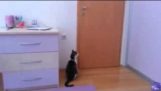 Πάνω στην κάσα μιας συρόμενης πόρτας, δύο γάτες που κινούνται αντίθετα θα πρέπει να βρουν μια λύση για να μην...