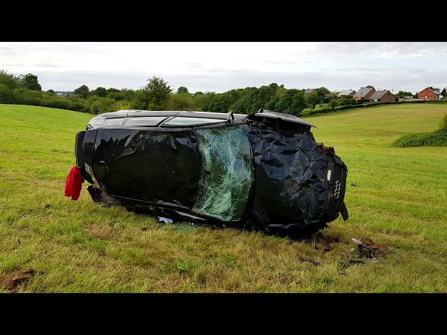 Το βίαιο ατύχημα ενός Audi RS3 8P που κινείται με 200 χλμ/ώρα σε δρόμο της πόλης Chimay στο Βέλγιο. Δεν υπήρξε θύμα κατά το ατύχημα.
