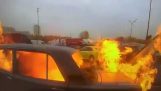 Ευτυχώς ο οδηγός δεν τραυματίστηκε σοβαρά και κατάφερε να βγει από το αυτοκίνητο μόνος του από την ηλιοροφή. Το ατύχημα βρίσκεται υπό διερεύνηση.