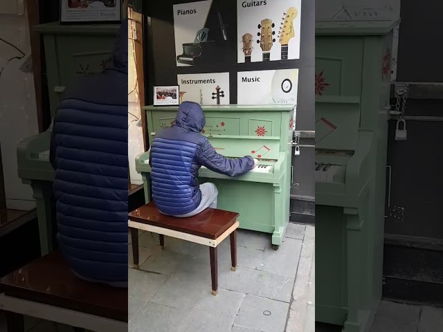 Φοβερός πιανίστας σε ένα κοινόχρηστο πιάνο, σε δρόμο του Μάντσεστερ