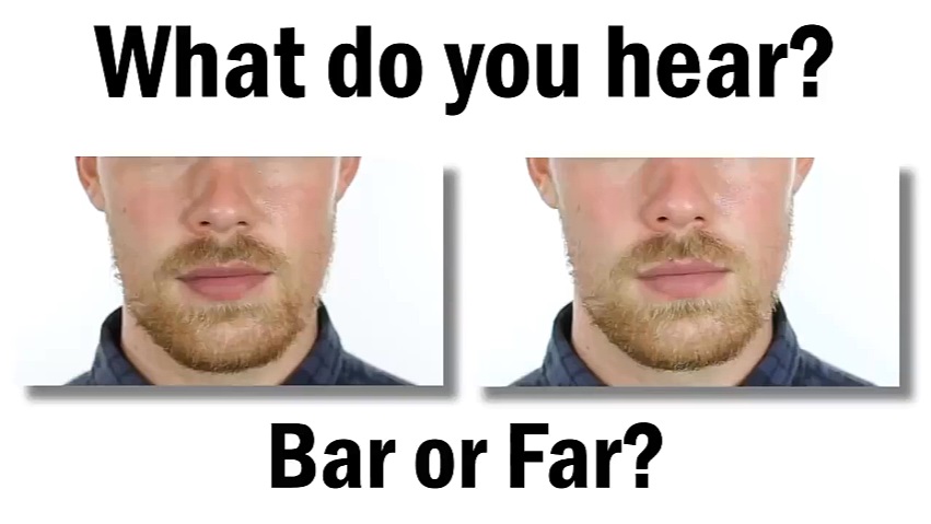 Δείτε με τη σειρά πρώτα το αριστερό και στη συνέχεια το δεξί βίντεο. Θα διαπιστώσετε ότι αν κοιτάξετε το αριστερό βίντεο ακούτε “Μπαρ” ενώ στο δεξί “Φαρ”. Αυτό είναι ένα παράδειγμα του παράξενου φαινομένου McGurk, που κάνει τις λέξεις στο μυαλό μας να ακούγονται διαφορετικές, ανάλογα με την κίνηση των χειλιών του ομιλητή.