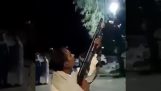 Μια γάτα στη Ρωσία κάνει την ανάγκη της ενώ στέκεται όρθια.