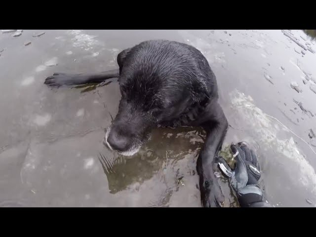 Υπάλληλοι του οργανισμού προστασίας ζώων RSPCA στη Βρετανία, διασώζουν ένα σκύλο που έχει παγιδευτεί σε μια παγωμένη λίμνη της πόλης Ashington.