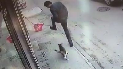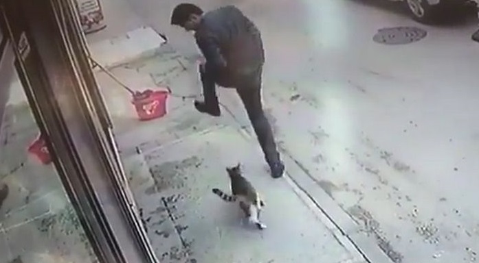 Καθισμένη σε ένα πεζοδρόμιο στην Μπούρσα της Τουρκίας, μια γάτα κάνει μια τρικλοποδιά από πίσω σε έναν άνδρα που περπατά αμέριμνος μπροστά της. Έκπληκτος από αυτή την “βίαιη” επίθεση, ο άνδρας θα παραπατήσει και θα πέσει στο δρόμο γυρνώντας τον αστράγαλό του. Προσέξτε τα μάτια της γάτας προς την κάμερα ασφαλείας, κάτι που σαφώς δείχνει ότι η σκηνή ήταν προμελετημένη.