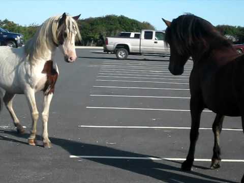 Στο νησί Assateague των Ηνωμένων Πολιτειών, δύο άγρια άλογα αρχίζουν ξαφνικά να καβγαδίζουν.