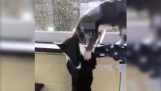 Αυτό το γατάκι δεν θέλει αγνώστους να περιφέρονται στο σπίτι, και προσπαθεί να φοβίσει αυτή την πήλινη γάτα με μερικές...