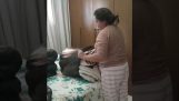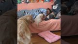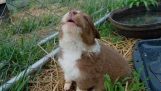 Ένα κουτάβι χρησιμοποιεί το μεγάλο αυτί της μαμάς του σαν κουβέρτα.