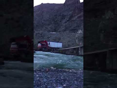 This large truck was transporting a mobile home when it came across a tiny wooden bridge. After lining itself up correctly, it slowly drove across without falling into the river below.