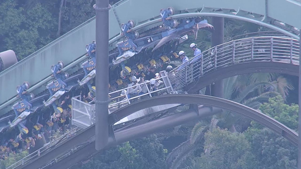 Οι επιβάτες σε ένα τρενάκι στο Universal Studios Japan Park στην Ιαπωνία, έμειναν ανάποδα σε ύψος 30 μέτρων για 2 ώρες μετά από βλάβη. Συνεργείο διάσωσης τους απεγκλώβισε με επιτυχία.