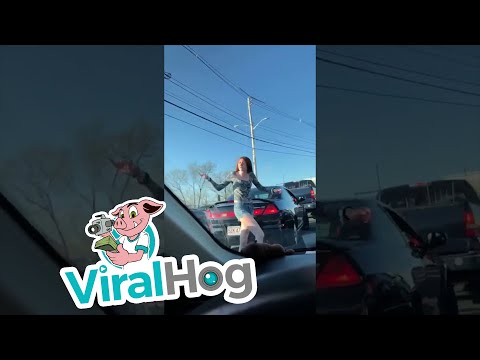A man cut off this woman in traffic, and she jumped out the window to confront him.