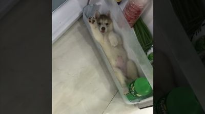 Στο Βιετνάμ, ένα κουτάβι χάσκι φαίνεται να απολαμβάνει ιδιαίτερα την δροσιά μέσα σε ένα ψυγείο.