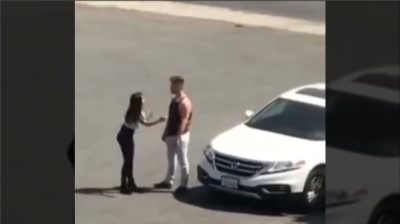 Ένας άντρας καβγαδίζει με την κοπέλα του, η οποία του φωνάζει ασταμάτητα και πετάει το κινητό του τηλέφωνο στο δρόμο.