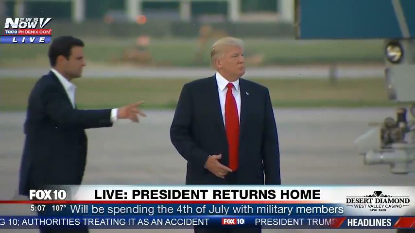 Βγαίνοντας από το προεδρικό αεροπλάνο, ο Donald Trump δεν βλέπει ότι η λιμουζίνα του βρίσκεται ακριβώς μπροστά του, και κατάφερε να χαθεί.