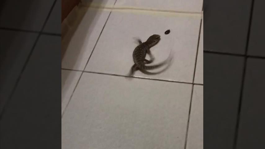 Μια σαύρα προσπαθεί να πιάσει ένα μικρό έντομο πάνω στα πλακάκια ενός διαμερίσματος στην Ταϊβάν. Όμως τα πόδια της γλιστρούν και δεν μπορεί να φτάσει το έντομο που τρέχει μπροστά της.