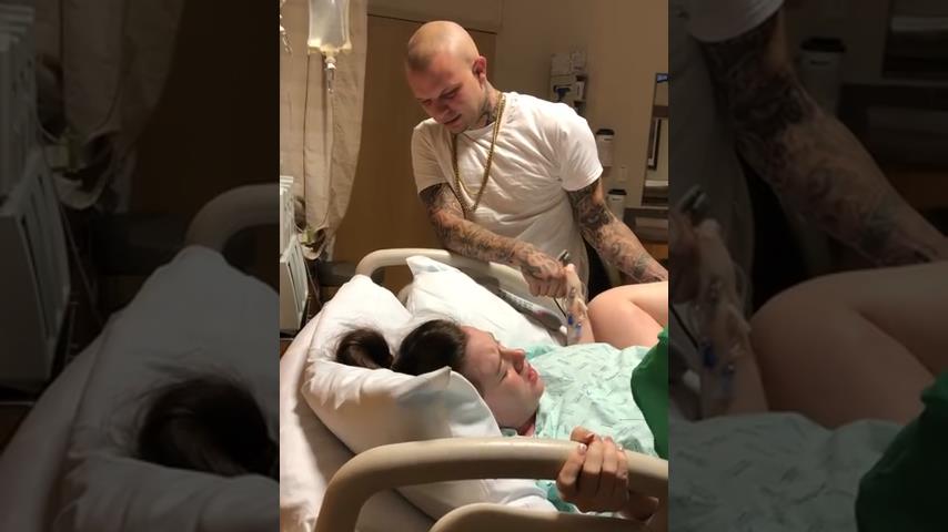 Στις 13 Δεκεμβρίου του 2018 στο Τέξας των Ηνωμένων Πολιτειών, ένας άνδρας στέκεται δίπλα στη σύζυγό του την ώρα της γέννησης του πρώτου τους παιδιού.