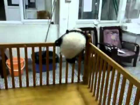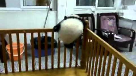 Ένα μικρό πάντα προσπαθεί να αποδράσει από την κούνια του στο κέντρο φροντίδας μικρών πάντα στο Chengdu της Κίνας