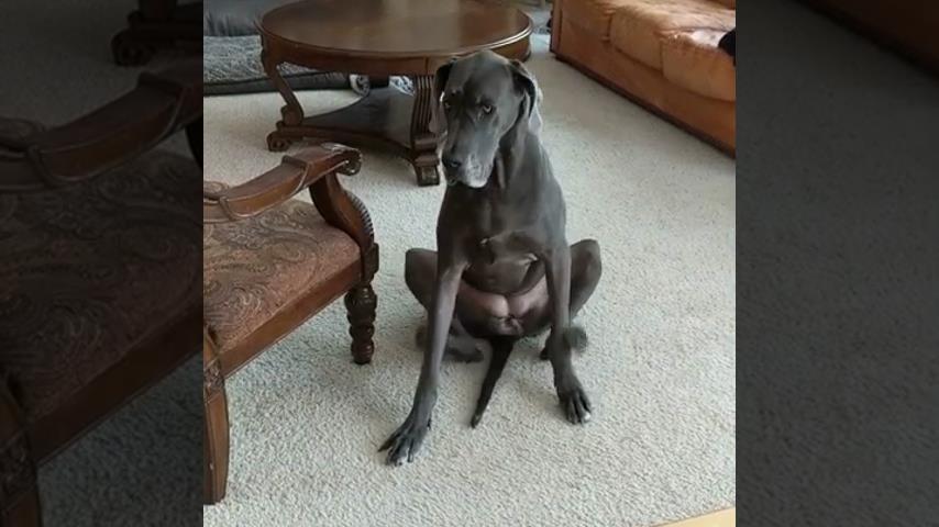 Η τεχνική της Gracie, ενός 3χρονου μαστιφ, που ξύνεται χρησιμοποιώντας τα δύο πίσω πόδια ταυτόχρονα.