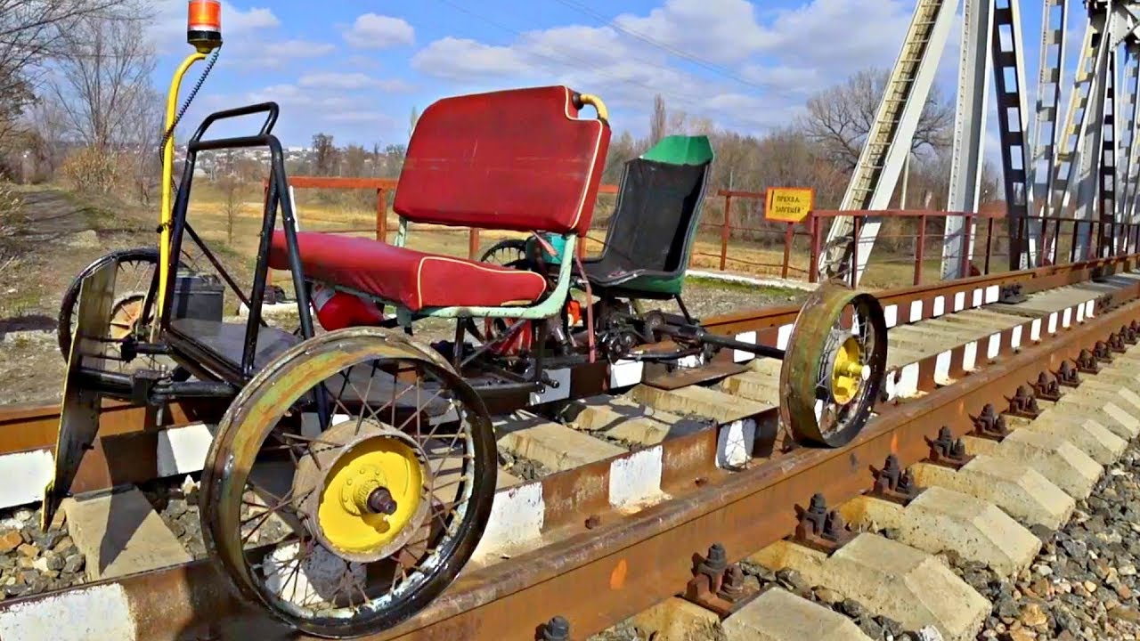 Χρησιμοποιώντας τροχούς και έναν κινητήρα μοτοσικλέτας, μηχανικοί από την Ουκρανία κατασκευάζουν ένα αυτοσχέδιο μικρό τρένο.