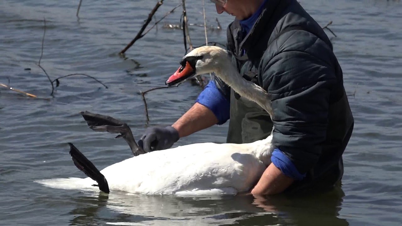 Στο Κουμπάν της Ρωσίας, ψαράδες βρίσκουν έναν κύκνο σε μια λίμνη να έχει μπλεχτεί σε μια πετονιά. Αφού τον βοηθήσουν, θα τον βγάλουν στην στεριά να ξεκουραστεί καθώς φαίνεται εξαντλημένος. Μετά από λίγη ώρα, ο κύκνος συνήλθε και επέστρεψε στο νερό.