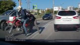 Ένας μοτοσικλετιστής που καταδιώκεται από δύο περιπολικά στη Βραζιλία, καταφέρνει να ξεφύγει. Στρίβει σε ένα στενό και κρύβει γρήγορα τη μοτοσικλέτα του του πίσω από ένα σταθμευμένο αυτοκίνητο στην άκρη ενός πεζοδρομίου. Οι αστυνομικοί στη συνέχεια περνούν από τον ίδιο δρόμο με μεγάλη ταχύτητα χωρίς να δουν τον φυγά.