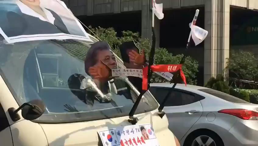 Πρωτότυπη μέθοδος προεκλογικής καμπάνιας σε ένα βαν στη Νότια Κορέα, το οποίο φαίνεται να είναι εναντίον του προέδρου Moon Jae-in.