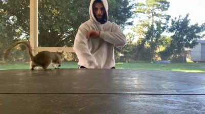 Στο St. Lucie της Φλόριντα, ένας άνδρας παίζει με έναν εξημερωμένο σκίουρο.