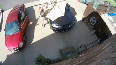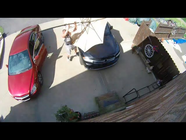 Ένας άνδρας παρκάρει μπροστά από ένα σπίτι, βγαίνει από το αυτοκίνητό του και αμέσως πιάνει μια μεγάλη ομπρέλα που παρασύρθηκε από τον δυνατό αέρα. Ο συγχρονισμός είναι τέλειος!