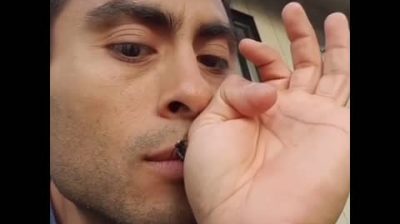 Μια τυφλή γάτα κάνει πεζοπορία με το αφεντικό της
