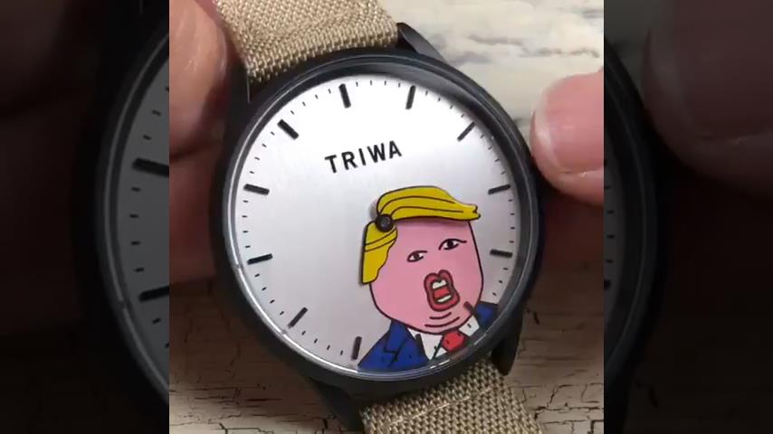 Ένα ρολόι Donald Trump από τη σουηδική εταιρία Triwa, με δείκτες τα ατίθασα μαλλιά του Αμερικανού προέδρου. Διατίθεται στην τιμή των 99 ευρώ.