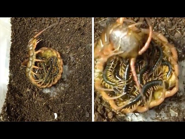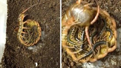 ‘red dragon’ insect curled up around her young