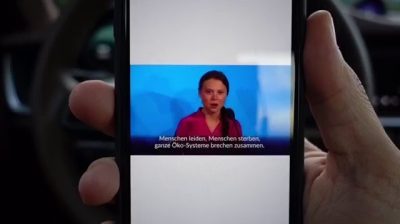 Ένας οδηγός παρακολουθεί την ομιλία της Greta Thunberg μέσα στο αυτοκίνητό του. Αφού παρακολουθήσει το βίντεο, βάζει το κομμάτι “Immigrant Song” των Led Zeppelin, ξεκινά την Porsche του και επιταχύνει. Στη συνέχεια σηκώνει την πίσω αεροτομή του για να αποκαλύψει το μήνυμα “Fuck you Greta”.
