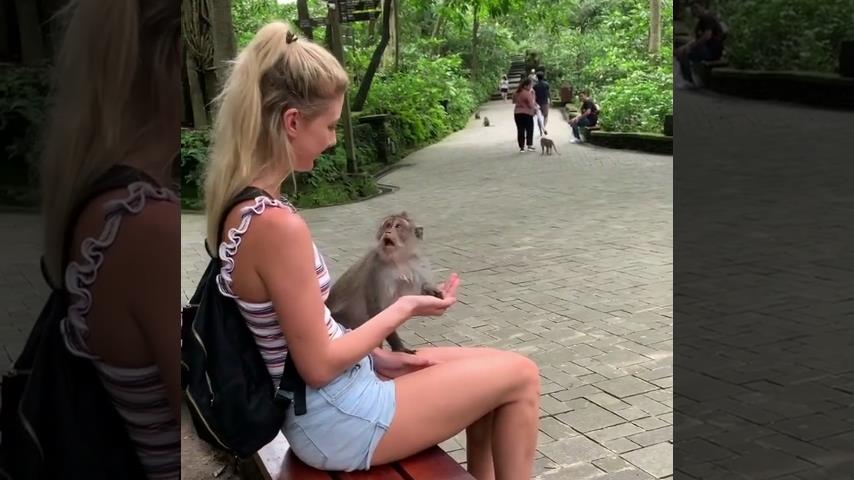 Στο δάσος των μαϊμούδων Ubud στην Ινδονησία, μια γυναίκα κάθεται σε ένα παγκάκι και κάνει έναν πίθηκο να πιστεύει ότι έχει φαγητό στο χέρι της. Ο πίθηκος πλησιάζει, σκαρφαλώνει στο παγκάκι και κοιτάζει την παλάμη του χεριού της. Ανακαλύπτει σοκαρισμένος ότι η γυναίκα τον κορόιδεψε, και γυρίζει να της δώσει ένα χαστούκι.