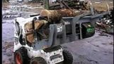 Αντίστροφη αναπαραγωγή ενός βίντεο, όπου ένα μηχάνημα κοπής κόβει τα κλαδιά ενός δέντρου με ένα πριόνι στον βραχίονά του.