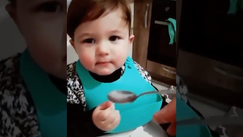 Ένα μωρό εκνευρίζεται με τα παιχνίδια της μαμάς του, όταν αυτή πλησιάζει το κουτάλι στο στόμα αλλά δεν του δίνει το φαγητό του.