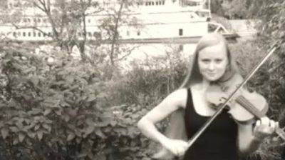 Hillary Klug, a musical artist, interprets her piece “Allie Cat” by playing the violin and tap dancing at the same time.