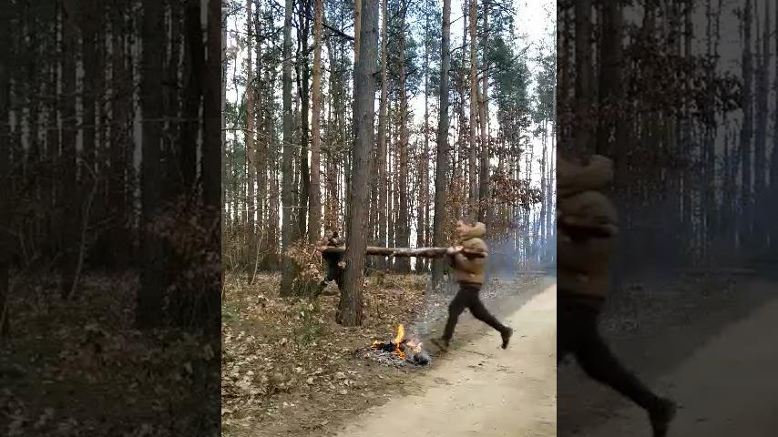 Δύο νεαροί από την Πολωνία επιχειρούν να σπάσουν έναν κορμό δέντρου στη μέση. Κρατούν τον κορμό οριζόντια ο καθένας από μια άκρη, και τρέχουν προς ένα δέντρο…