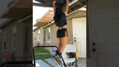 Ένας σκύλος προσπαθεί γρήγορα να βοηθήσει την ιδιοκτήτριά του για να μην πέσει.
