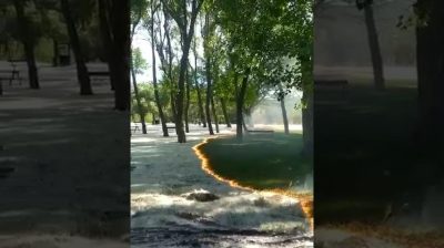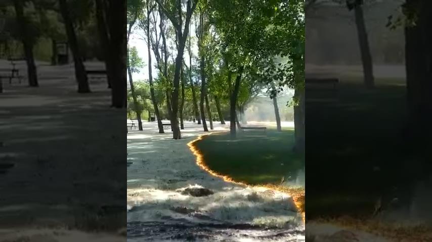 Η θεαματική εξέλιξη μιας φωτιάς πάνω σε γύρη λεύκας, που αποκαλύπτει το πράσινο γρασίδι του πάρκου Cidacos de Calahorra, στην Ισπανία.