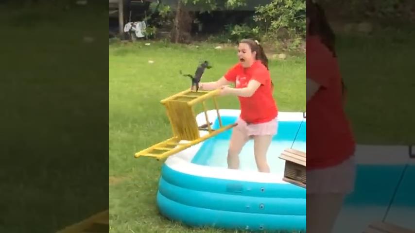 Ένα κορίτσι δοκιμάζει να βοηθήσει ένα σκίουρο που είναι παγιδευμένος μέσα σε μια φουσκωτή πισίνα. Χρησιμοποιεί μια ξύλινη καρέκλα για να πιάσει τον σκίουρο και να του επιτρέψει να βγει από την πισίνα, αλλά το σχέδιο θα έχει απρόσμενη κατάληξη. Το μικρό τρωκτικό πηδά πάνω στο κορίτσι που στη συνέχεια τρομάζει και φεύγει κλαίγοντας, ενώ ο σκίουρος πέφτει πάλι στο νερό.