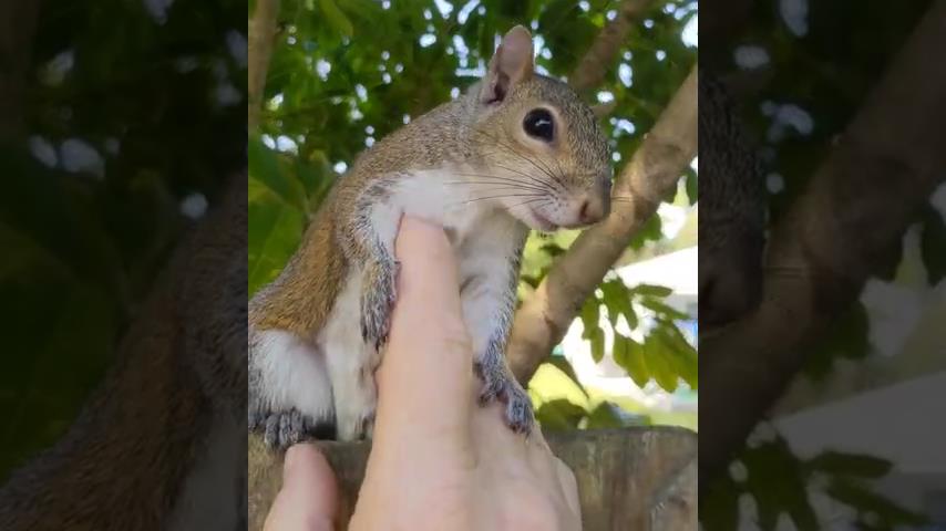 Ένας σκίουρος επισκέπτεται τον άνθρωπο που τον έσωσε