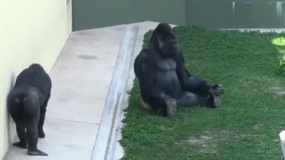 Σε ένα ζωολογικό κήπο, ένας νεαρός γορίλας θέλει να παίξει με τον μπαμπά του. Τον πλησιάζει σιγά σιγά και ύπουλα από πίσω για να τον πειράξει.