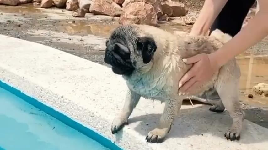 Ένα παγκ θέλει οπωσδήποτε να μπει στο νερό μιας πισίνας για λίγο κολύμπι.