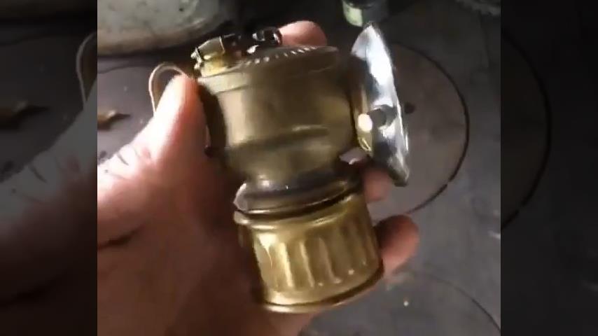 Ένας παλιός λαμπτήρας ανθρακωρύχου που λειτουργεί με νερό και καρβίδιο του ασβεστίου. Όταν το καρβίδιο του ασβεστίου αλληλεπιδρά με το νερό, απελευθερώνεται αέριο ακετυλένιο. Ένας μοχλός στην κορυφή χορηγεί την παροχή νερού στον κάτω θάλαμο όπου βρίσκεται το καρβίδιο του ασβεστίου, ρυθμίζοντας έτσι την ένταση της φλόγας.