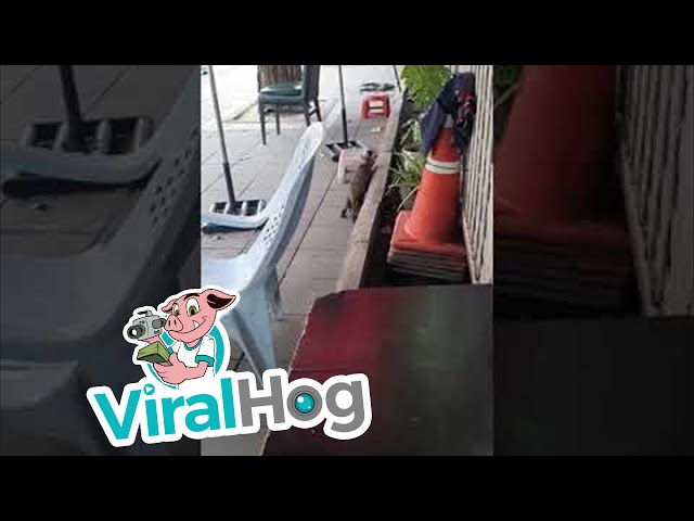 Cat vs door-to-door salesman on a Segway