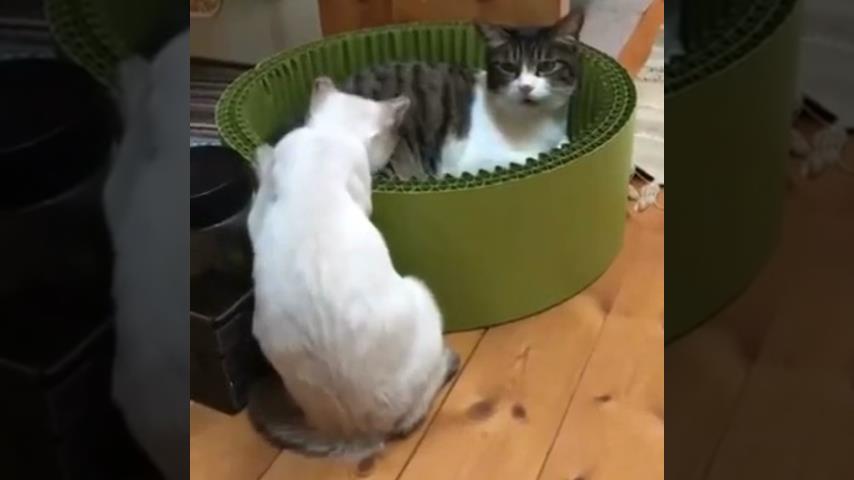 Με ένα δυνατό χτύπημα, μια γάτα βγάζει νοκ άουτ τη συγκάτοικό της.