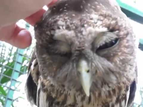 Μια μικρή κουκουβάγια απολαμβάνει το ξύσιμο στην πλάτη
